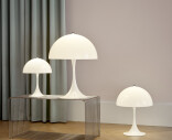 Häikäisemätöntä valoa tuottava Panthella on upea esimerkki Verner Pantonin nerokkuudesta tunnelmallisen valaistuksen saralla. 50 vuotta Panthellan ensiesittelyn jälkeen Panthella Pöytä julkaistiin uudessa koossa. Sen halkaisija on 32 cm, joka on Panthella 250 (aikaisemmin nimeltään Mini) ja Panthella 400 -pöytävalaisimien välissä oleva koko.