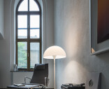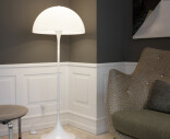 Panthella lattiavalaisin tuottaa häikäisemätöntä, pehmeän miellyttävää valoa. Valkoinen opaaliakryyli antaa miellyttävän hajavalon läpikuultavan varjostimen, sisävarjostimen alaspäin suunnatun valaistuksen ja trumpettimaisen valaisinvarren heijastuksen ansiosta.