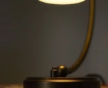 Runko on valmistettu ikääntyneestä messingistä, huolellisesti käsitellystä pinnasta, jossa on hienovaraiset harjatut linjat ja lämmin, hillitty ilme. Pinta on lakattu hapettumisen estämiseksi, mikä säilyttää sen elegantin viimeistelyn ajan myötä ilman, että siihen kehittyy lisäpatinaa. Valaisimen yläosa on kallistettavissa ±45° valon suuntaamisen helpottamiseksi.