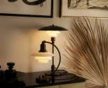 PH 3/2 on tanskalaisen valaisinsuunnittelun klassikko, joka pohjautuu Henningsenin tunnettuun kolmivarjostinjärjestelmään vuodelta 1926. Suupuhalletut opaalilasit koostuvat kolmesta kerroksesta: kiiltävä ulkopinta, opaalivalkoinen keskikerros ja hiekkapuhallettu sisäpinta. Tämä yhdistelmä tuottaa pehmeän ja tasaisen valon, joka suuntautuu alaspäin ilman häikäisyä – ihanteellinen kirjoituspöydälle, sivupöydälle tai tunnelmavaloksi olo- ja makuuhuoneeseen.