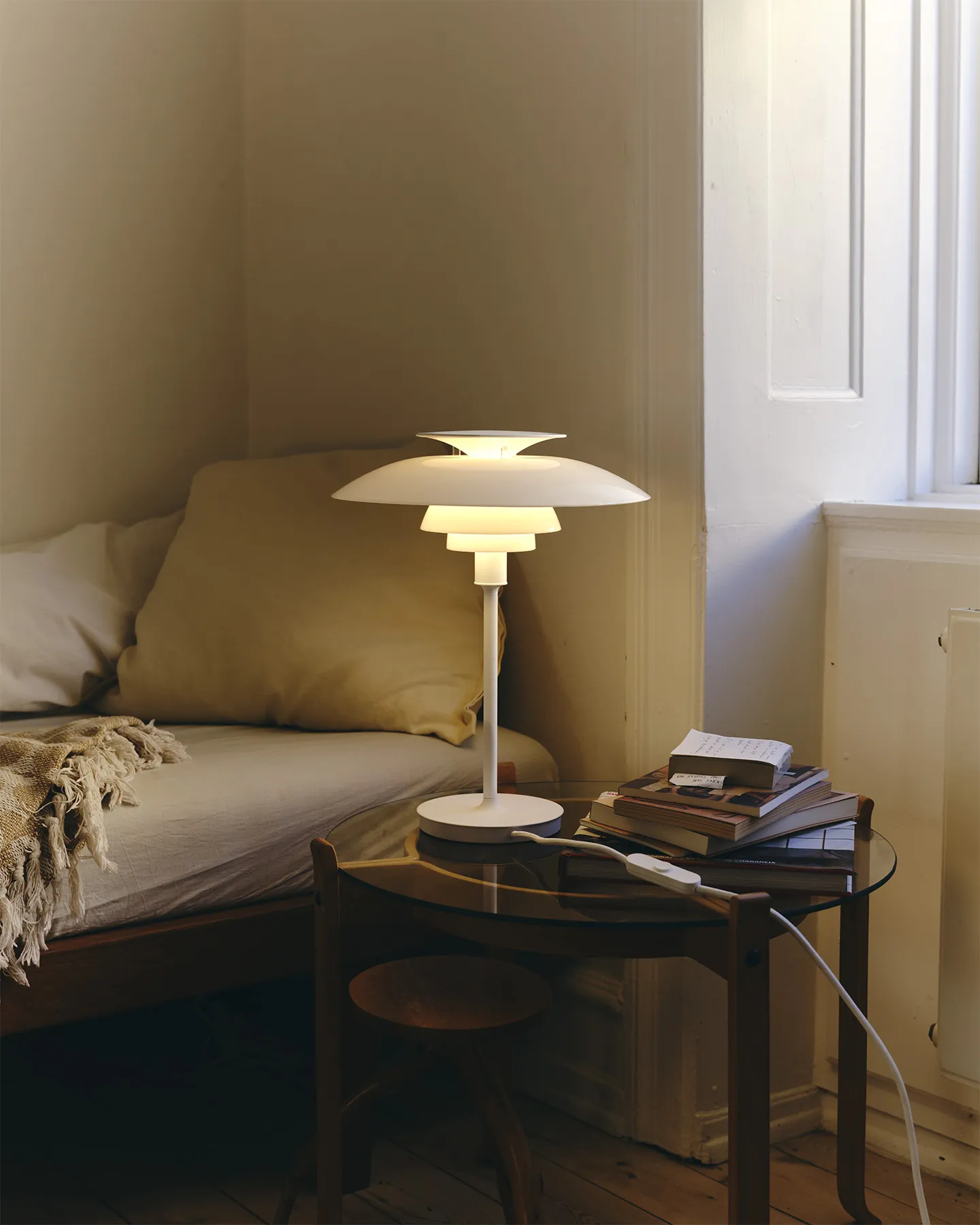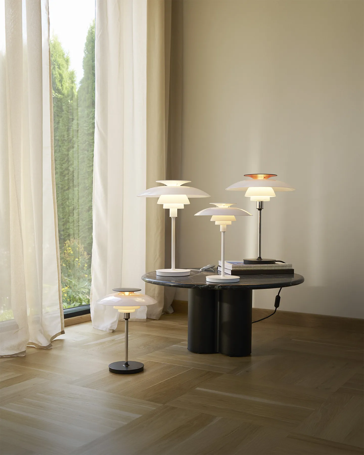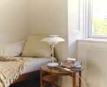 PH 80 Table Lamp on Louis Poulsenin uutuus – klassisen PH 80 -valaisimen moderni pöytäversio. Valaisin perustuu Poul Henningsenin tunnettuun kolmivarjostinperiaatteeseen ja levittää pehmeää, tasaista ja täysin häikäisemätöntä valoa – täydellinen tunnelmavalaistus olohuoneeseen, makuuhuoneeseen ja työtilaan.