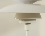 Valaisin noudattaa Henningsenin kolmivarjostinperiaatetta, jossa valo heijastuu useaan kertaan varjostimien välillä ja jakautuu tasaisesti tilaan. Opaaliset akryylivarjostimet luovat lämpimän, miellyttävän sävyn, ja yläheijastin vahvistaa pehmeää, alaspäin suuntautuvaa valoa.