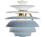 Soft White-, Dusty Green- ja Dusty Blue -värit antavat valaisimelle nykyaikaisen ilmeen. Lakattuja varjostimia täydentää runko, joka on joko korkeakiiltävää kromia tai kiillotettua metallisoitua messinkiä. PH Snowball sopii ruokapöydän ylle, eteisiin, portaikkoihin tai muihin tiloihin, joissa sekä valo että muoto saavat tulla esiin.