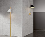 Materiaali: Varjostin: valkoinen, märkämaalattu alumiini. Jalusta: harjattu italialainen Carrara-marmori. Valaisinvarsi: harjattu messinki (kirkas lakattu).