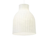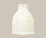 “The Strand Pendant Lamp is formed from a sprayed cocoon material with its cloud-like appearance that tightly clings to a spinning steel frame. It consists of tiny strands for a complex, intriguing structure that shrouds the light source while acting as its diffuser. With its see-through expression, the cocoon material allows for the Strand Pendant Lamp to filter light for a warm, comfortable glow.”