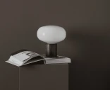 Karl-Johan-pöytävalaisin opaalilasista ja savutammesta on kompaktin kokoinen pöytävalaisin, joka tuottaa pehmeän ja tasaisen valon. Suupuhallettu lasikupu lepää sylinterimäisen puujalustan päällä, ja valaisin on helppo sijoittaa yöpöydälle, ikkunalaudalle tai sivupöydälle.