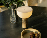Tämä ainutlaatuinen pöytävalaisin yhdistää modernin muotoilun kannettavaan toiminnallisuuteen. Kiillotettu marmorisokkeli tarjoaa vakautta, kun taas yläosa levittää pehmeää ja miellyttävää valoa. Sen kompaktin koon ansiosta sitä on helppo siirtää tarpeen mukaan. Integroitu akku tarjoaa jopa 10 tuntia käyttöaikaa suurimmalla kirkkaudella. Lamppu on helppo ladata USB-C-kaapelilla, mikä varmistaa ongelmattoman käytön. Painamalla varovasti lampun metalliympyrää voit valita kolmen eri valotason välillä. Näin voit luoda täydellisen valotason mihin tahansa tilanteeseen.
