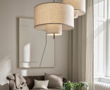 Sarjaa on saatavilla kolmessa koossa (Ø50, Ø70 ja Ø90 cm) ja kahdessa värissä: valkoinen ja beige canvas. Pienempi malli sopii hyvin pyöreän ruokapöydän ylle tai eteiseen, kun taas suuremmat versiot luovat avaruutta olohuoneessa ja avoimissa tiloissa. Koosta riippumatta Margin-riippuvalaisin on enemmän kuin pelkkä valonlähde – se yhdistää materiaalit ja mittasuhteet tavalla, joka tuntuu luonnolliselta kodissa.