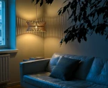 Kontro 6000 tuo klassiselle kattokruunulle modernin ilmeen. Valaisimen avoin muotoilu on sekä esteettinen että käytännöllinen, suunniteltu levittämään valoa laajalle ja luomaan tasapainoisen valaistuksen huoneeseen. Kestävästä taivutetusta koivusta valmistettu valaisin edustaa suomalaista käsityötaitoa ja muotoiluperinnettä.