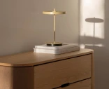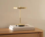 Asteria Move -pöytävalaisimessa on sisäänrakennettu LED-paneeli ja valkoinen diffuusori, jotka tuottavat pehmeän ja häikäisemättömän valon. Valaisimen kirkkautta voi säätää neljässä portaassa, joten valaistuksen voi helposti mukauttaa tarpeen mukaan. Ladattava akku tarjoaa 10–168 tunnin käyttöajan valitusta valotasosta riippuen, ja sen voi ladata mukana tulevalla USB-C-kaapelilla tai langattomasti Qi-laturilla.
