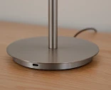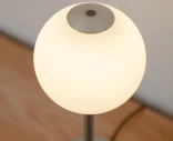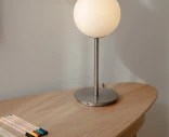 Audrey-pöytävalaisin on hillitty mutta tyylikäs yksityiskohta, jossa yhdistyvät opaalinvalkoinen, suupuhallettu lasikupu ja jalusta messingissä tai teräksessä. Valo levittyy pehmeästi ja tasaisesti, ja sitä voi himmentää helposti valaisimen yläosassa olevasta painikkeesta. Lampussa on integroitu LED-paneeli sekä huomaamaton USB-portti – kätevä lisä myös kotitoimistossa.