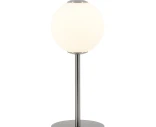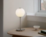 Audrey-pöytävalaisin Umagelta on rauhallisen moderni muodoltaan, jossa metalli ja opaalilasi kohtaavat pehmeässä kontrastissa. Se luo miellyttävän valon, joka sopii yhtä hyvin makuuhuoneeseen kuin työpöydälle.