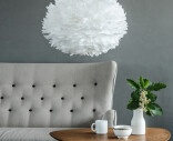 EOS -valaisin lumoaa kevyellä kauneudellaan. Luonnollisista, eettisesti kerätyistä hanhenhöyhenistä käsintehty lampunvarjostin valaisee pehmeällä, lämpimällä valolla ja tuo tekstuuria ja persoonallisuutta sisustukseen. Höyhenvalaisin sopii täydellisesti makuuhuoneeseen, olohuoneeseen tai pilvimäisen muotonsa ansiosta lastenhuoneeseen. Helppo puhdistaa pölystä hiustenkuivaimen avulla.