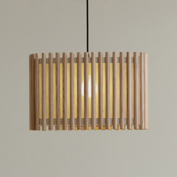 Komorebi on japanilainen sana valolle, joka siivilöityy puiden lehtien lävitse. Sana kuvastaa tätä puusäleistä ja tekstiilistä valmistettua lampunvarjostinta hyvin. Puun ja tekstiilin yhdistelmä tuo sisustukseen rauhallista ja maanläheistä tunnelmaa.