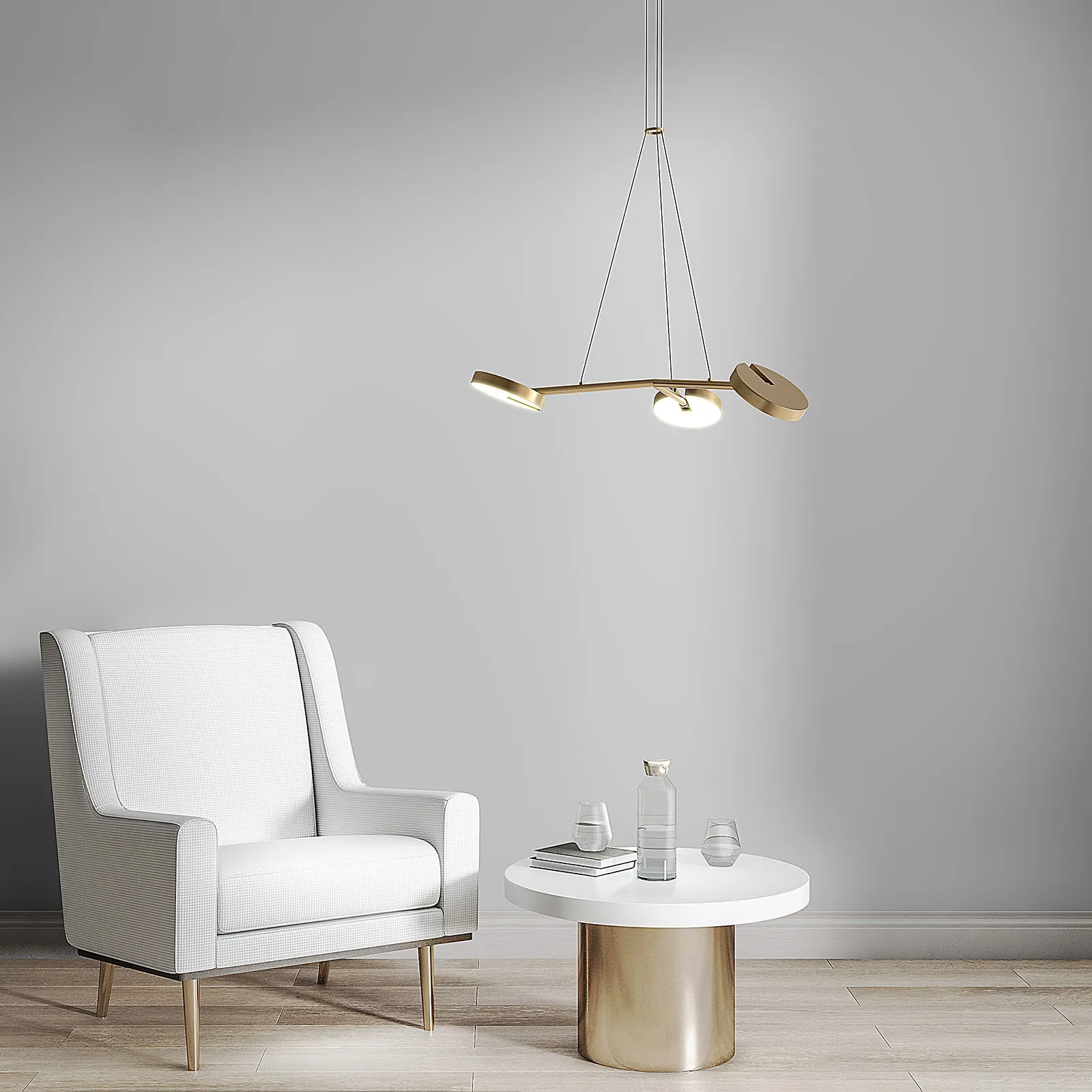 Jokaisen varren päässä on pyöreä LED-paneeli, joka tuottaa suunnattua mutta pehmeää valoa. Integroidut LED-valonlähteet luovat tasaisen, lämpimän valon, mikä tekee Arm 3:sta harkitun valinnan ruokapöydän ylle, olohuoneeseen tai tiloihin, joissa valomukavuus on tärkeää.