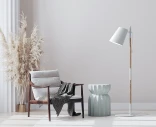 Finder on lattiavalaisin, jossa on siro siluetti ja säädettävä varjostin, joka tarjoaa kohdistettua ja toiminnallista valoa. Metallin, puuyksityiskohtien ja tekstiilivarjostimen yhdistelmä luo rauhallisen ilmeen, joka sopii sekä olohuoneeseen että työympäristöihin.