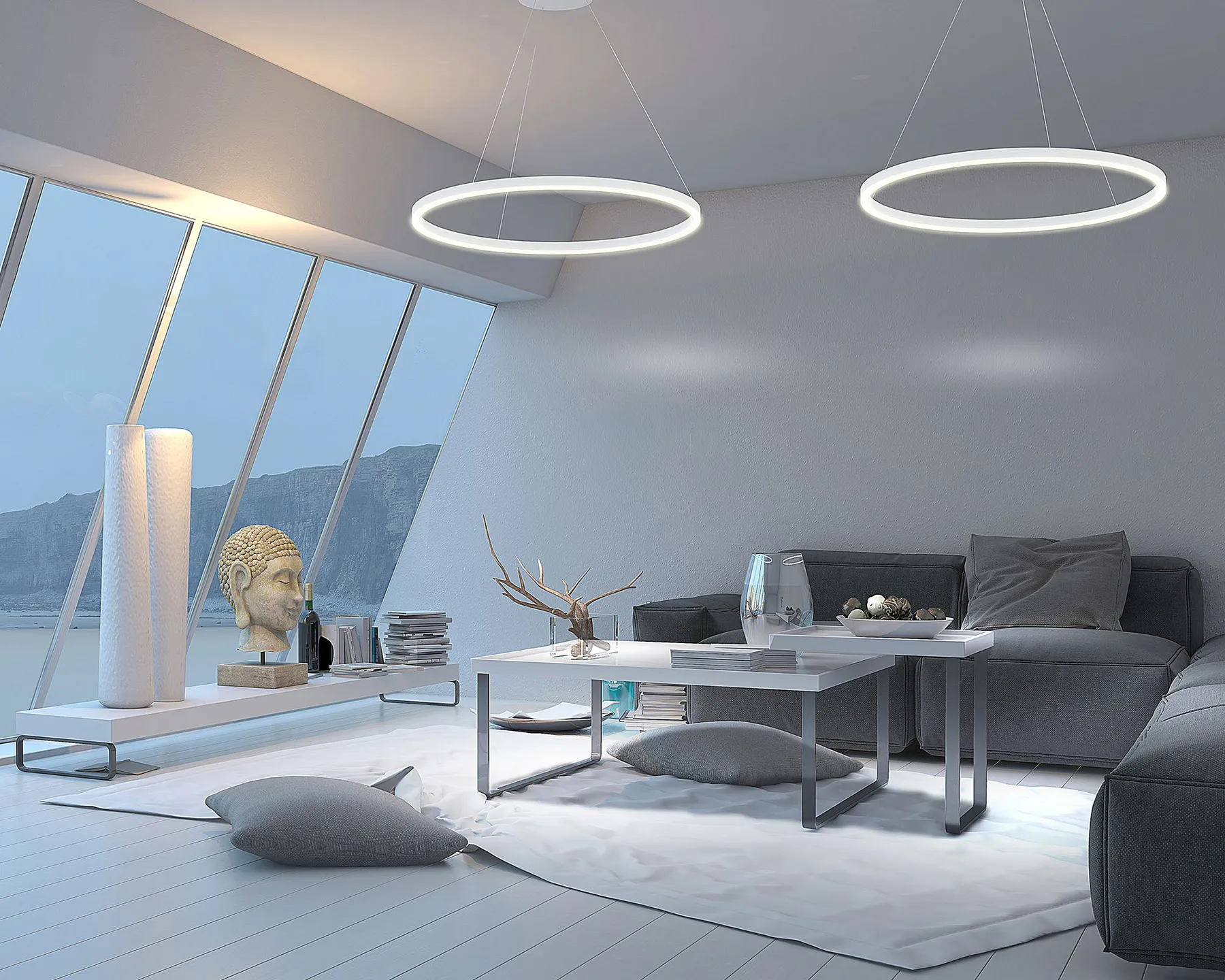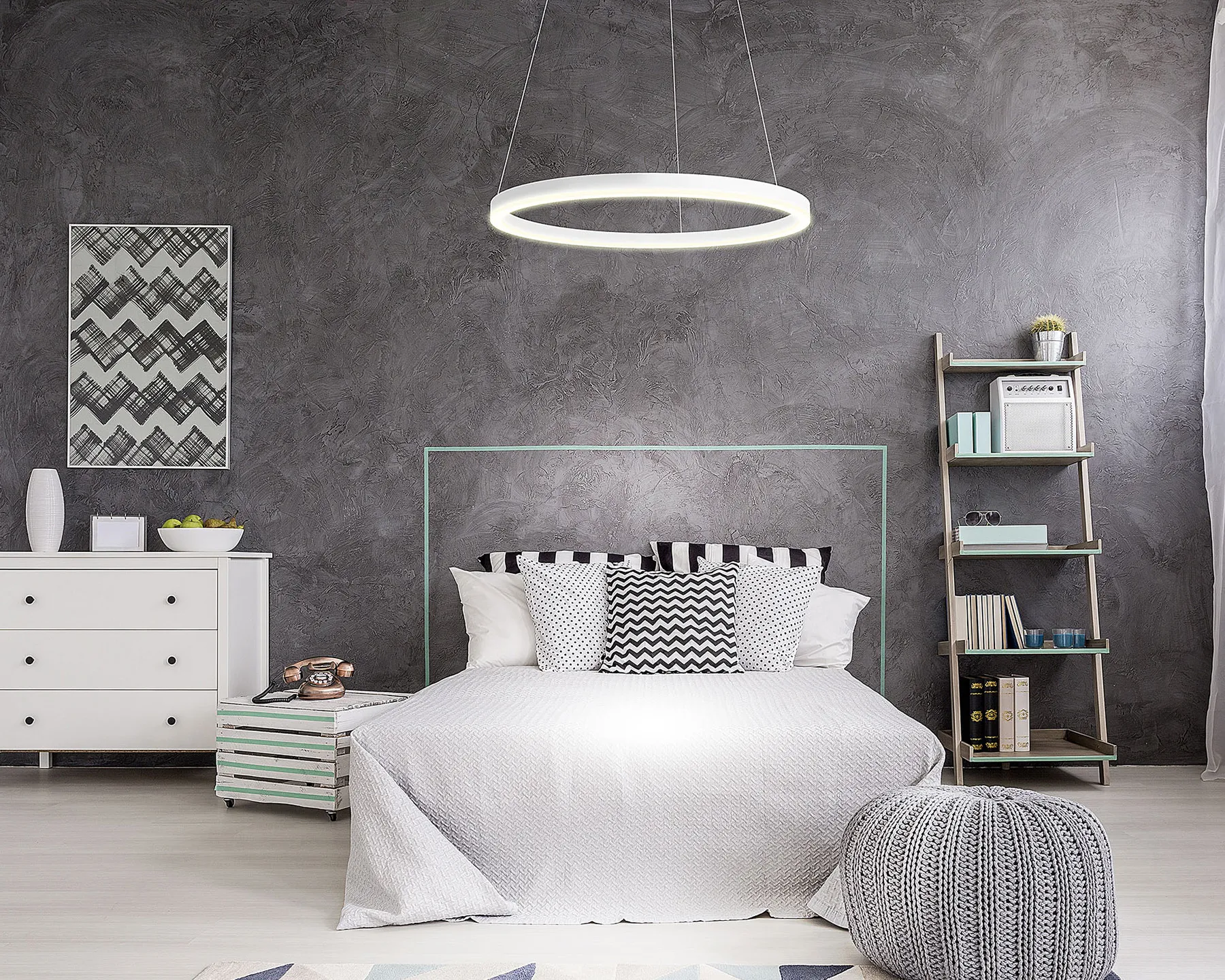 Valaisin Grönlundin Layer 1 -riippuvalaisimessa on yhtenäinen ja hillitty muotoilu, jossa pyöreä muoto tuo tilaan selkeää mutta pehmeää valoa. Valaisin koostuu valorenkaasta, jossa on integroitu LED, ja sitä on saatavana kahdessa koossa – 60 ja 80 cm – mikä tekee siitä monikäyttöisen sekä pienemmissä että suuremmissa tiloissa.