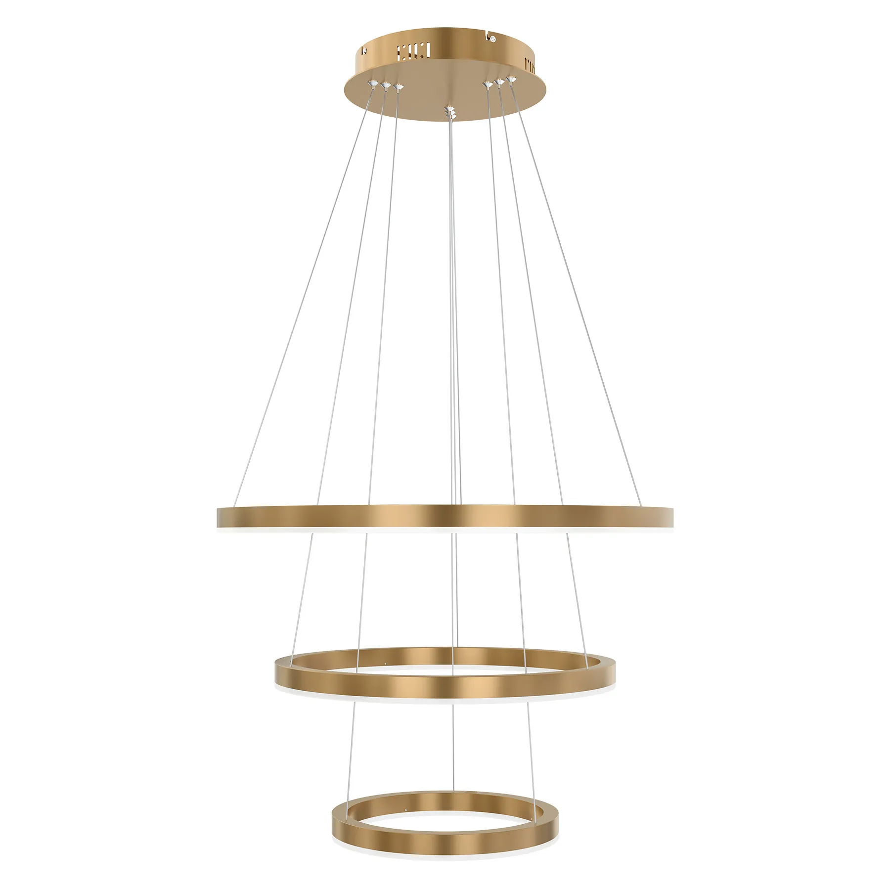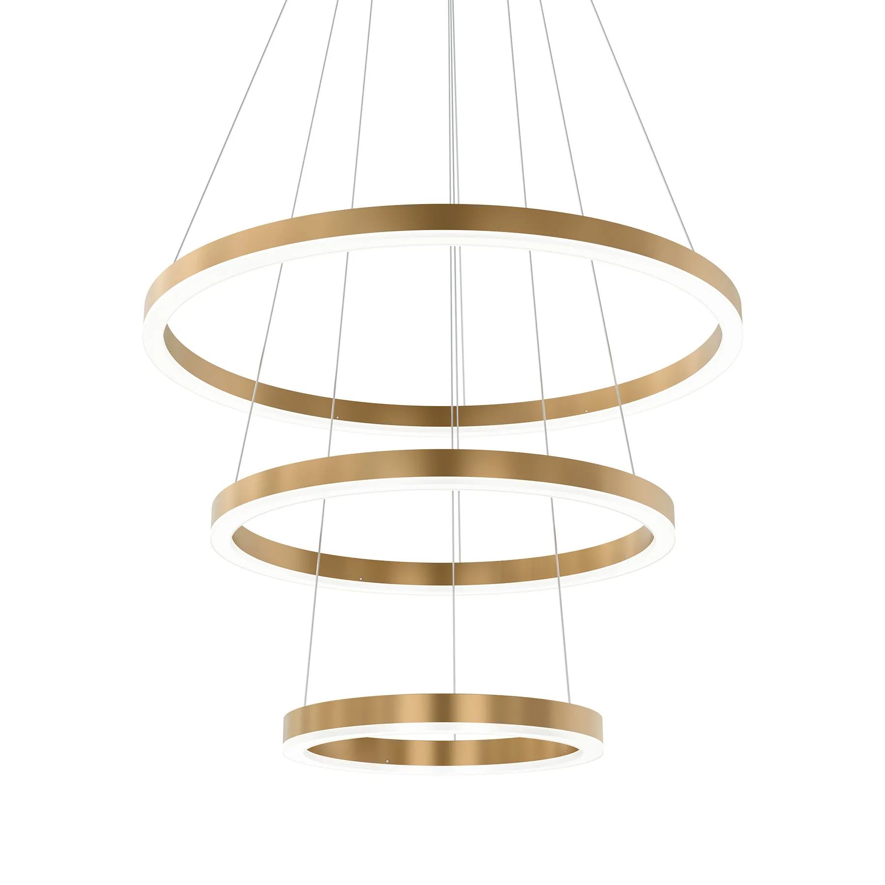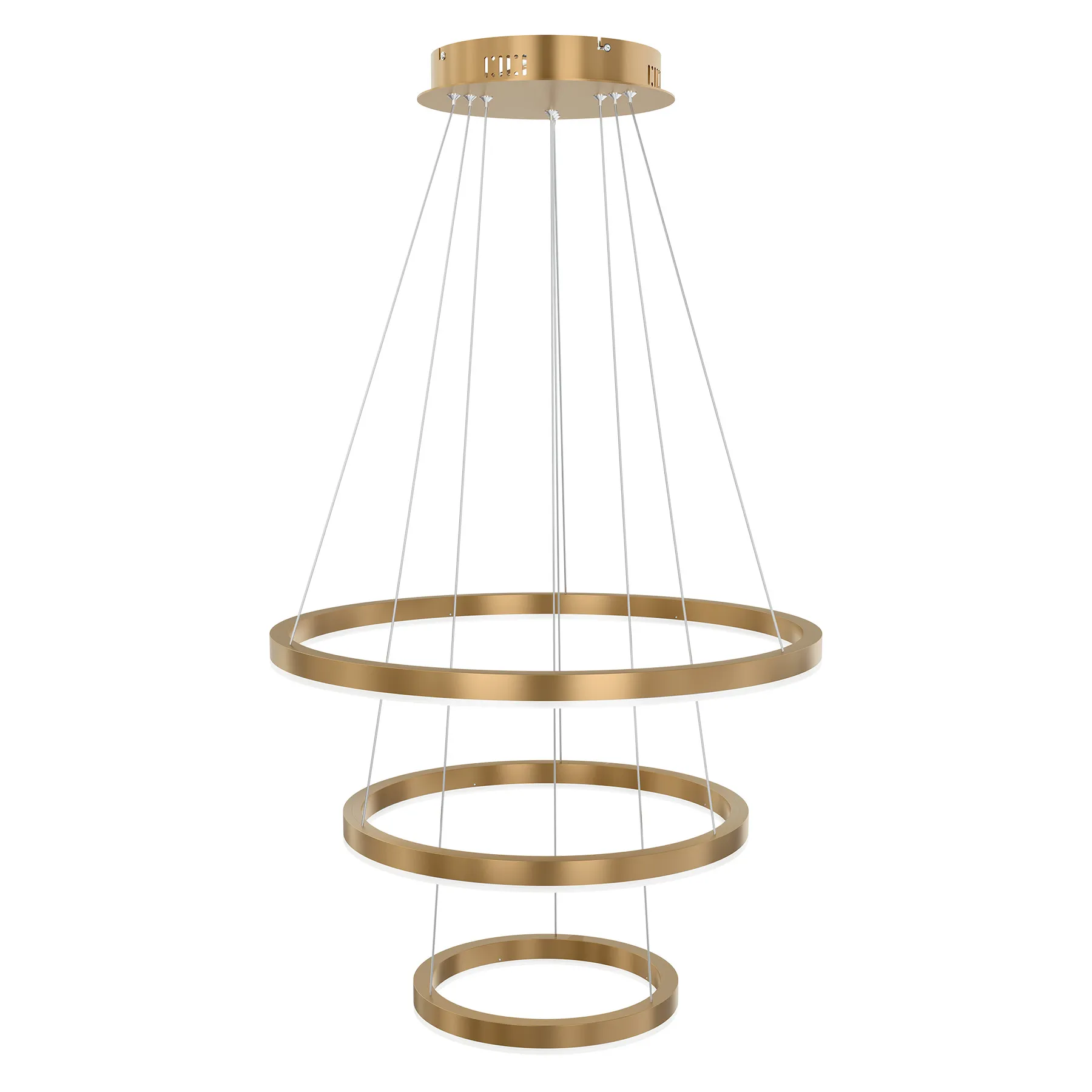 Valaisin Grönlundin Layer 3 -riippuvalaisin koostuu kolmesta valorenkaasta, joiden halkaisijat ovat 60, 45 ja 30 cm. Renkaat on sijoitettu eri korkeuksille, mikä luo kerroksellisen ilmeen ja tuo valoon sekä leveyttä että syvyyttä.