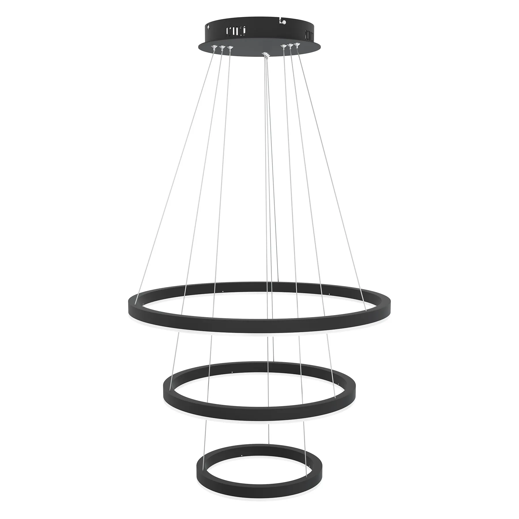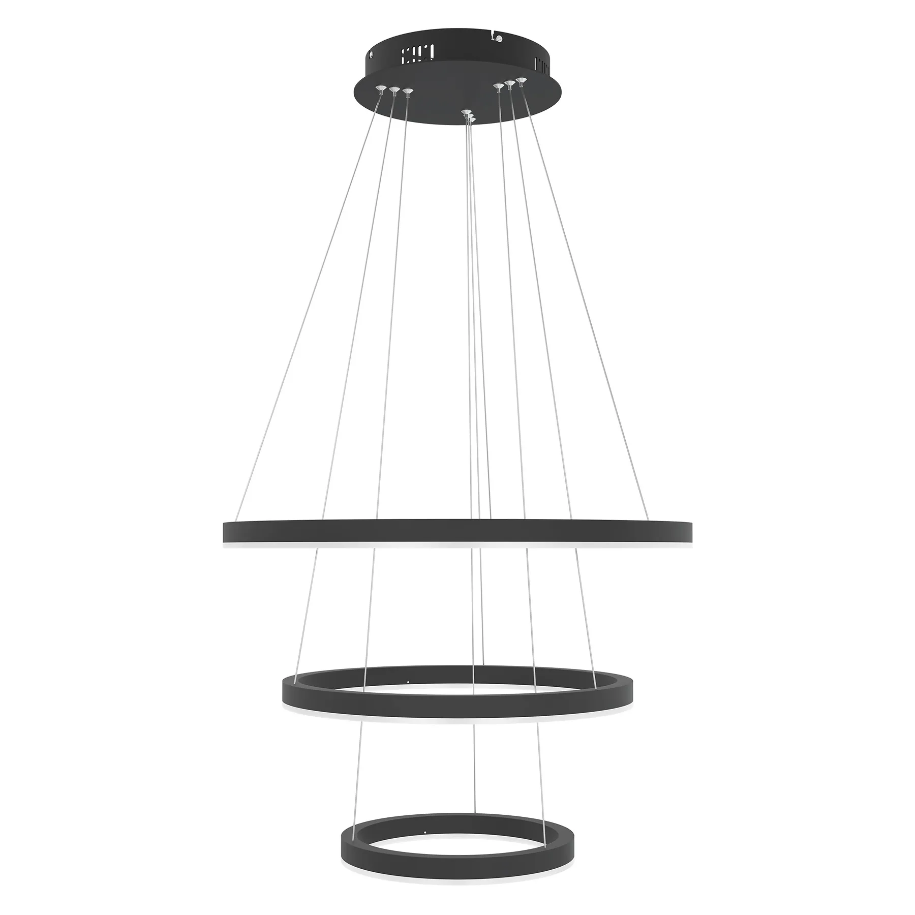 Layer 3 on riippuvalaisin, jossa kolme erikokoista, pyöreää valorengasta muodostavat tasapainoisen ja tasaisesti jakautuvan valon. Eri tasoille sijoitetut renkaat tuovat valaisimeen syvyyttä ja tekevät siitä luonnollisen katseenvangitsijan.