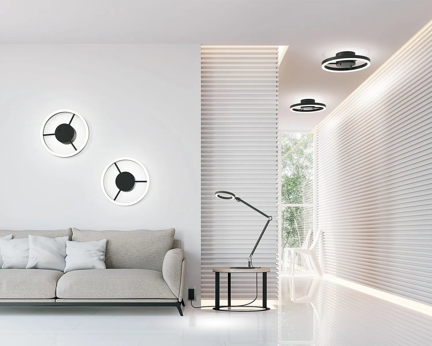 Wheels on riippuvalaisin integroidulla LED-valaistuksella ja rengasmaisella rakenteella, joka luo tilaan tasaisen ja miellyttävän valon. Valaisin on TRIAC-himmennettävä ja saatavilla neljässä koossa – eri tiloihin sopivaksi.
