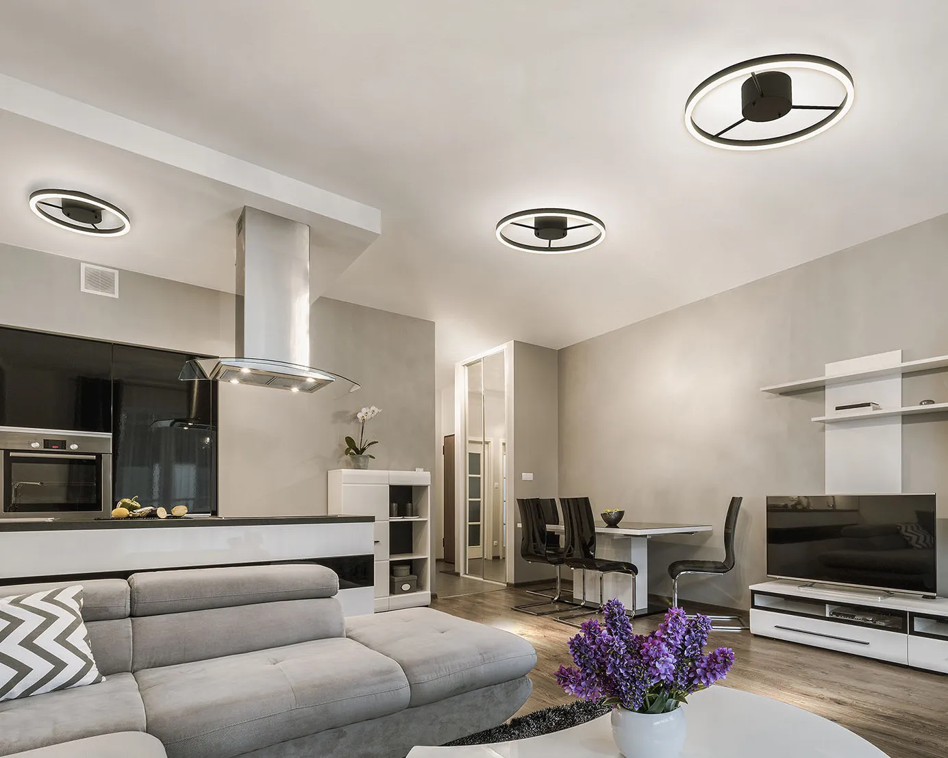 Valaisin Grönlundin Wheels-riippuvalaisin on suunniteltu tuottamaan vakaata ja tasaista yleisvalaistusta. Pyöreä muoto luo kattoon selkeän mutta ilmavan vaikutelman ja sopii hyvin olohuoneeseen, keittiöön, makuuhuoneeseen tai eteiseen, kun tilaan halutaan yhtenäinen valaistus.