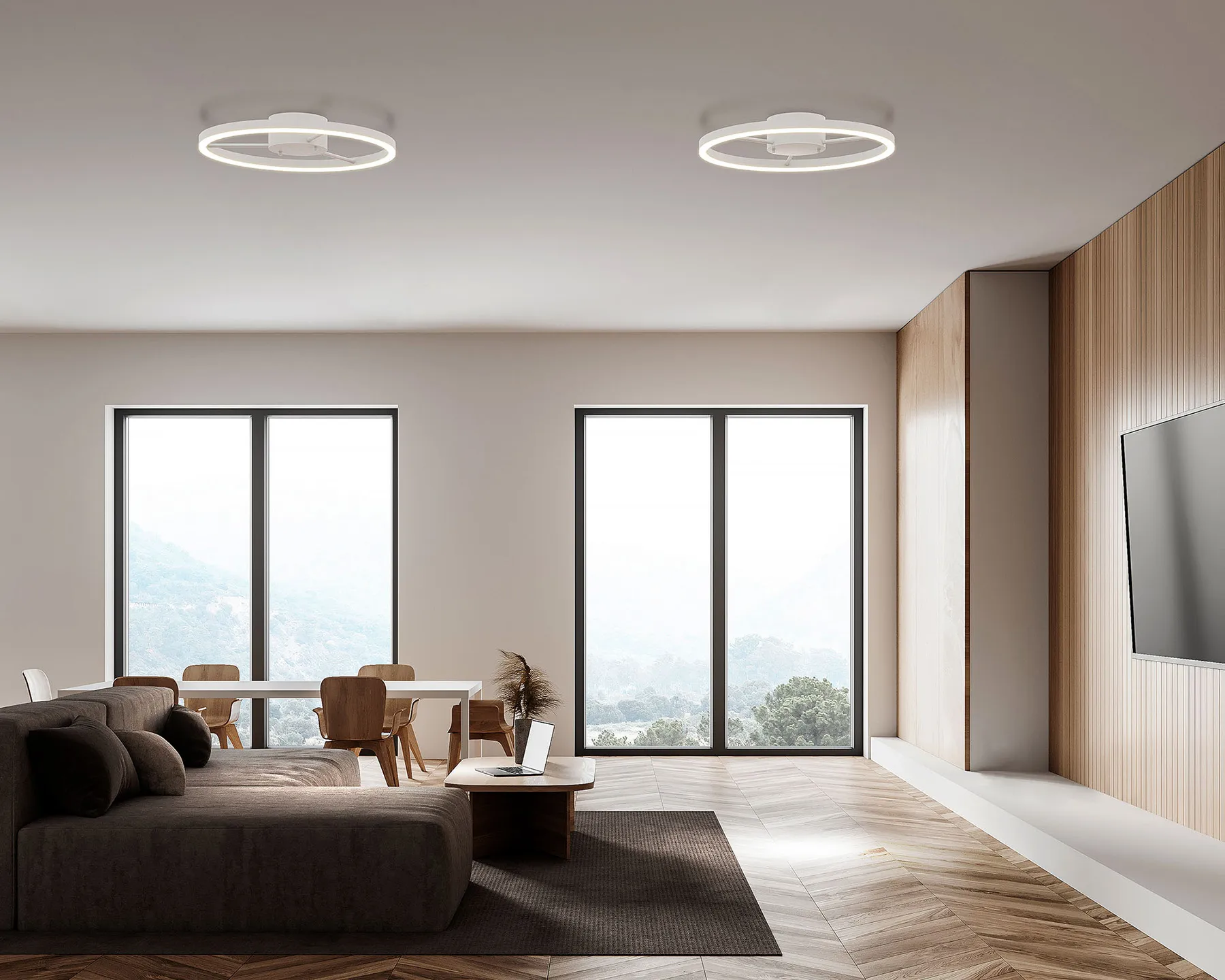 Wheels on riippuvalaisin integroidulla LED-valaistuksella ja rengasmaisella rakenteella, joka luo tilaan tasaisen ja miellyttävän valon. Valaisin on TRIAC-himmennettävä ja saatavilla neljässä koossa – eri tiloihin sopivaksi.